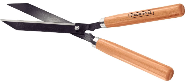 - A tesoura é própria para desbaste e acabamento de cerca viva, arbustos e para aparar a grama. Também pode ser utilizada na topiaria (arte de podar plantas em formas ornamentais).